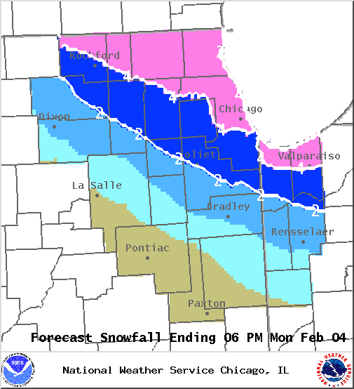 The National Weather Service has issued a Winter Weather Advisory covering the entire Chicago area until noon on Monday, February, 3rd.